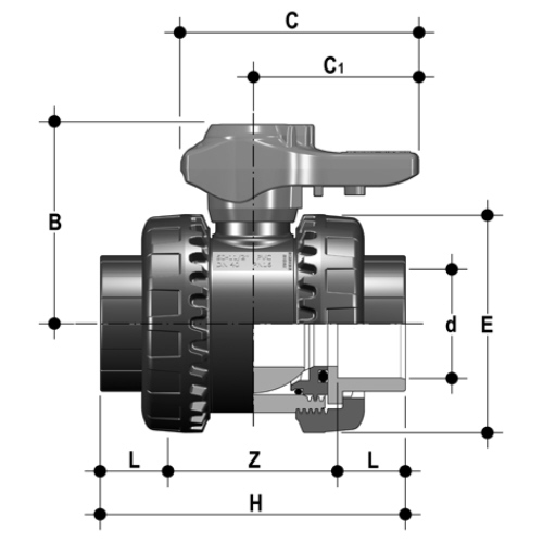 PVC-U Kugelhahn VEE, Klebemuffe, PE-EPDM