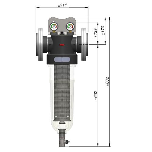 Cintropur Filtergehäuse Filtertyp NW800 - Anschlüsse: 3’’, DN80, Flansch - Durchfluss: 32 m³/h bei delta P 0,2 bar - Betriebsdruck: 10 bar - Max. Druck: 16 bar - Max. Betriebstemperatur: 50°C - Entleerungsschraube: Polyamid (PA) + Polyester (2K) - Filterkopf: Polypropylen (PP) + 20%Glasfaser (GF) - Filterglocke: SAN - Filterschlüssel: ABS - Muffe: PA - Flansch: PP + 30% GF - O’Ringe: Nitril Butadien Rubber (NBR) - Zentrifuge + Abschlussdeckel: Polypropylen (PP) + 20% GF + Schaumgummi (2K) - Filterstützkorb: PP + 20 % GF - Adapter Ablasskugelhahn: PA - Filtervliese: Polyester (nicht waschbar) oder Nylon (waschbar) - Filteroberfläche: 1288 cm² - Serienmäßige Ausstattung: Filtervlies in 25 Mikron, Schlüssel, Ablasskugelhahn ¾ Messing vernickelt, 2 Manometer mit Glycerin 0-20 bar ¼’’ Messing + 2 Anschlüsse 2 ½ ’’ - Option: Wandhalterung aus Edelstahl in 3 mm - Sonstige verfügbare Feinheiten: Nichtwaschbar: 1 -5-10 -25-50-100 Mikron (Set von 5 Filtervliesen)Waschbar: 150-300 Mikron |