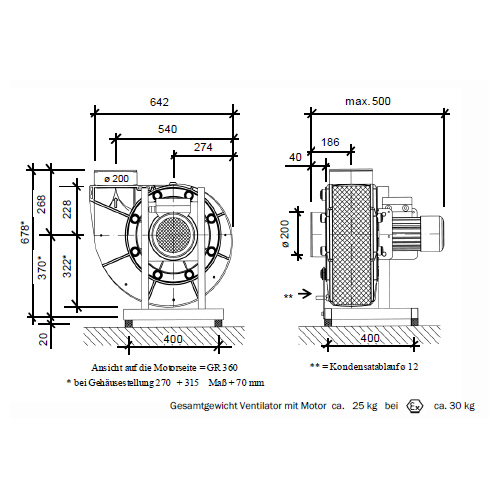 Radialventilator FRv 200/ 225/ 2/ R / D/ EX