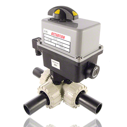 | 3/2-Wege-Kugelhahn aus PP mit elektrischem Stellantrieb mit Endlagenrückmeldern, Handnotbetätigung und optischer Stellungsanzeige Kugel mit L-Bohrung Standardkugelstellung: 1 Stellantriebsdaten: Standard 90-240V / 50-60Hz (AC) ohne Aufpreis 24V AC/DC Andere Spannungen auf Anfrage Anschluss: PE-LS-Stutzen zum Heizelementstumpf- und Heizwendelschweißen Dichtung: PTFE/FPM |