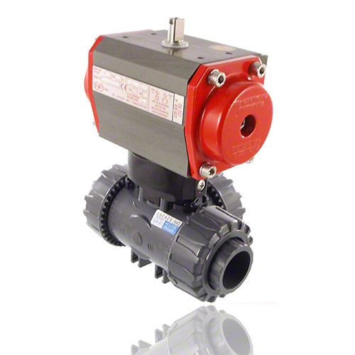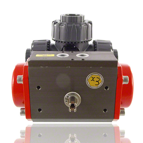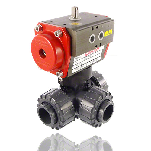 3/2-Wege-Kugelhahn aus PVC-U mit pneumatischem Stellantrieb