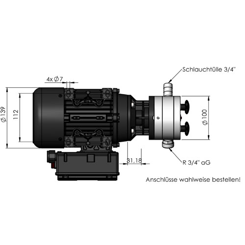 Impellerpumpe mit Motor, Kabel und Stecker