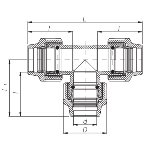 PP Klemmverbinder Typ UNIDELTA für PE Rohre, T-Stück 90° egal