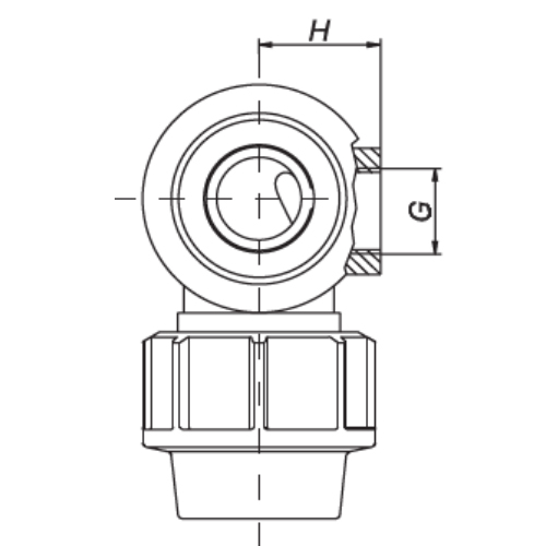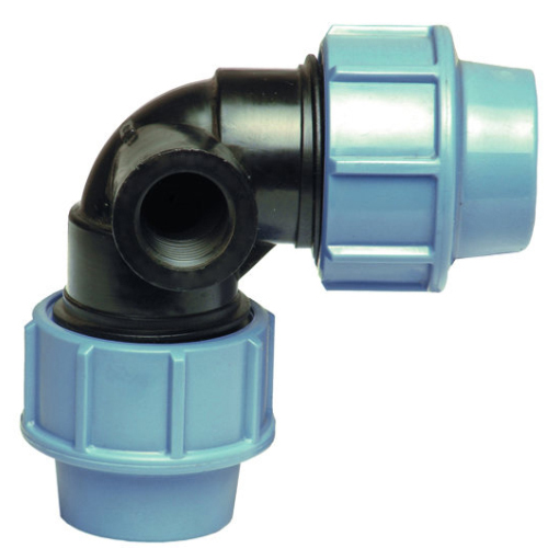 PP Klemmverbinder Typ UNIDELTA für PE Rohre, Winkel 90° mit Abagng seitlich