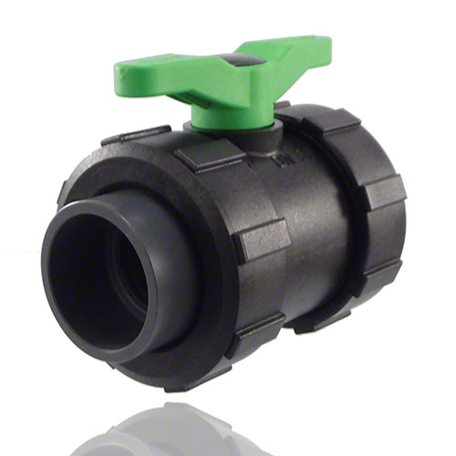 2-Wege-Kugelhahn PPGF, PVC-U-Klebemuffen, FPM = grüner Hebel