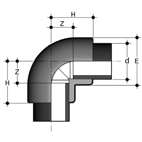 PP Winkel 90°, SDR 11, zum Heizelementmuffenschweißen