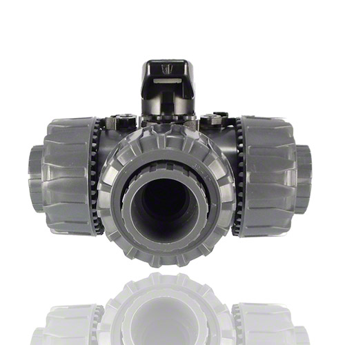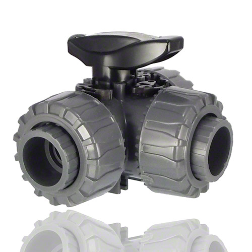 PVC-U 3-Wege-Kugelhahn, L-Bohrung, Klebemuffe, FPM