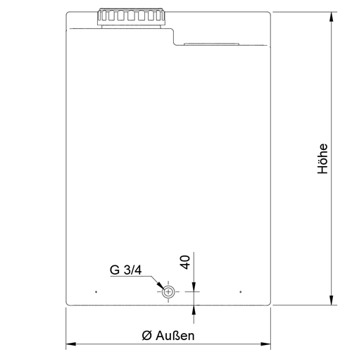 - Eingeformte Gewindemuffe 3/4", nicht aufgebohrt, inkl. Stopfen