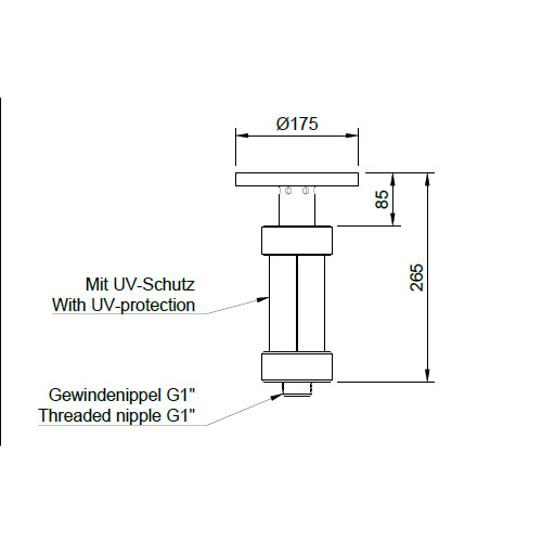 - Anbauteil: UV- Schutzrohr aus PE-el, geschlitzt für das Sichtrohr