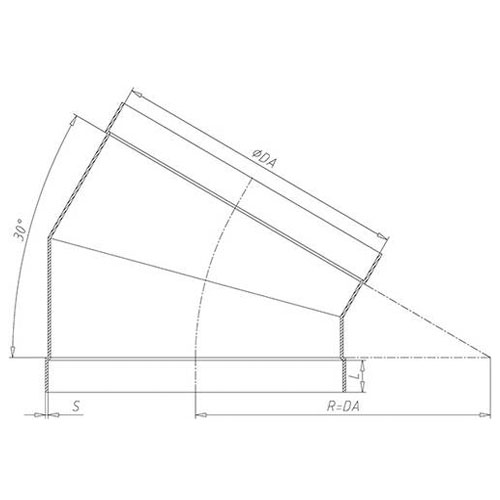 - Muffeninnendurchmesser in Anlehnung an die DIN 8077, R=DA