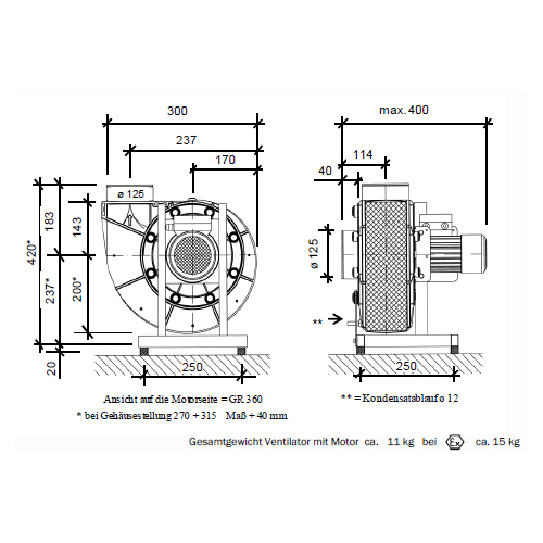 Radialventilator FRv 125/ 2/ L / D/ EX