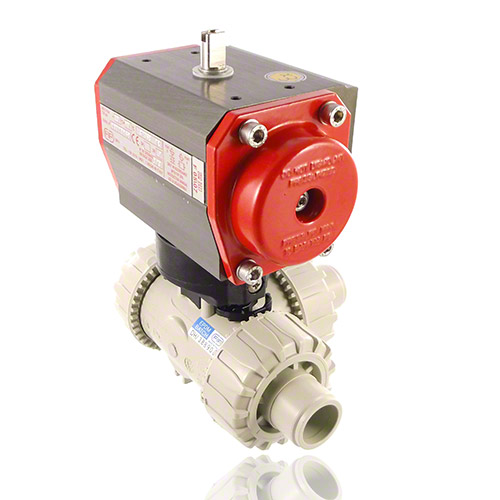 | 3-Wege-Kugelhahn aus PP mit pneumatischem Stellantrieb Funktion: doppelt wirkend, inklusive optischer Stellungsanzeige Kugel mit T-Bohrung Standardkugelstellung: 1 Steuerdruck: Standard 5 bar reduzierter Steuerdruck: auf Anfrage Steueranschluß: G 1/8' Namur (DN15) G 1/4' Namur (DN20 - DN50) Anschluss: Schweißstutzen zum Heizelementmuffenschweißen Dichtung PTFE/FPM |