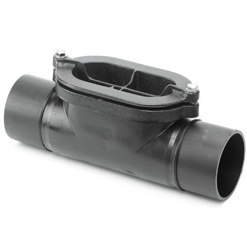PE-Abfluss Putzstück, mit ovalem Metall-Verschlussdeckel