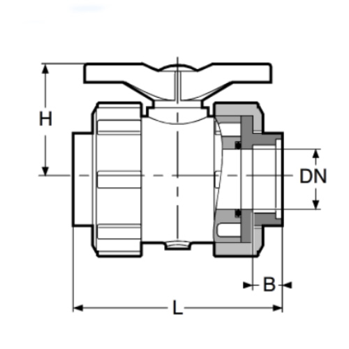2-Wege-Kugelhahn PPGF, PP-Stutzen, FPM  = grüner Hebel