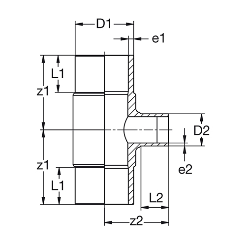 Außendurchmesser und Wanddicke entsprechend DIN EN ISO 15874.Toleranzen bei den Z-Maßangaben sind abhängig von der Dimension. Bis d/D 160 = +/- 3 mm. Ab d/D 180 = +/- 10 mm.